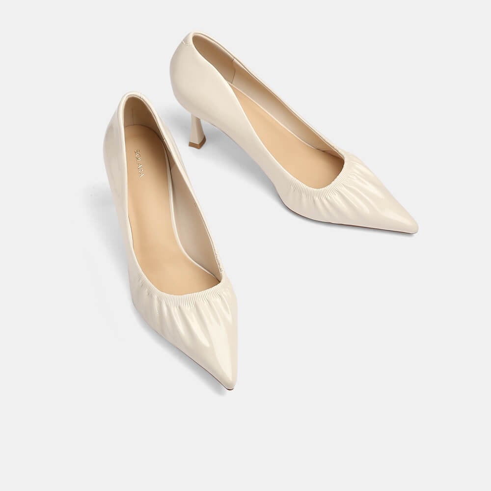 Giày cao gót mũi nhọn chun viền Solara GBW0276 được gia cố mút trên mặt tẩy êm mềm, kết hợp phần hậu có lớp pho cải thiện được việc đau gót chân