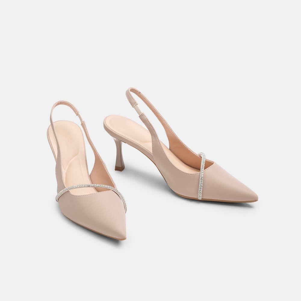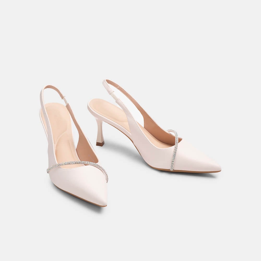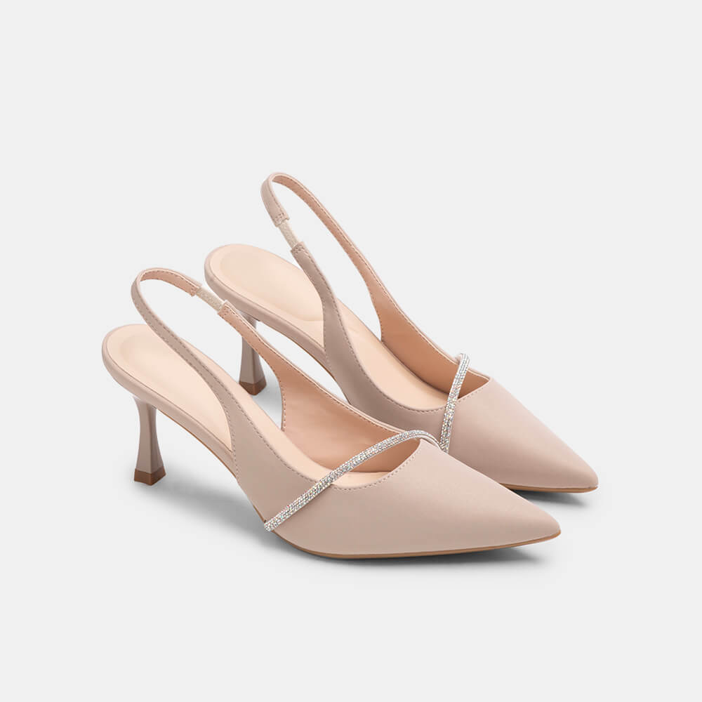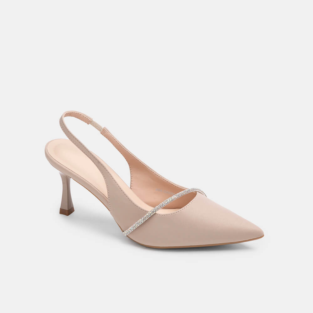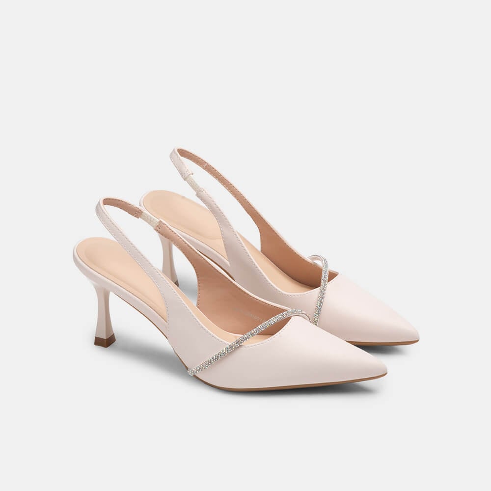 Giày cao gót sling back mũi nhọn phối charm BQ GMI0013