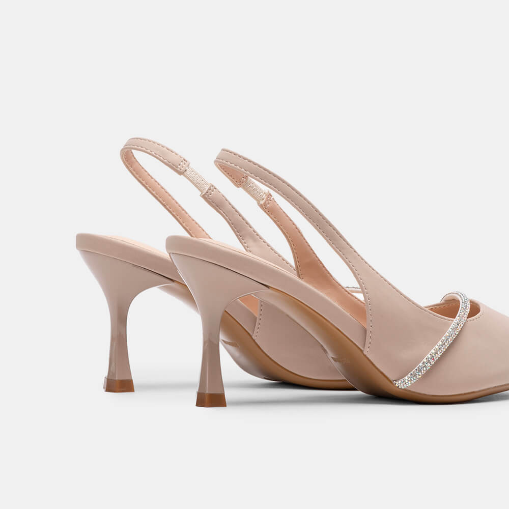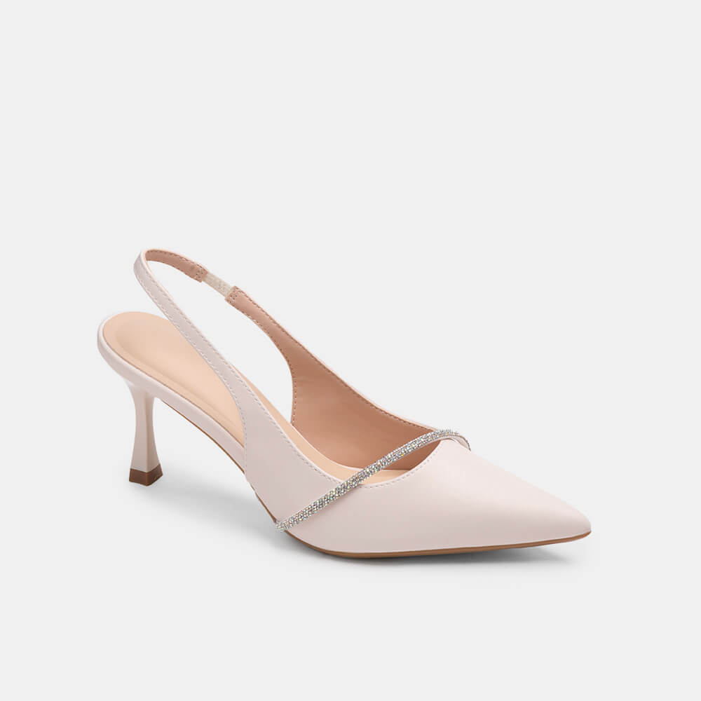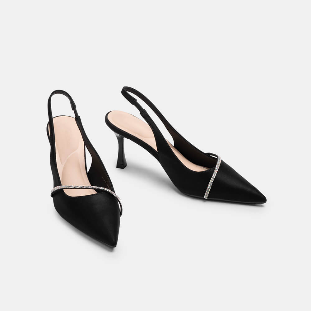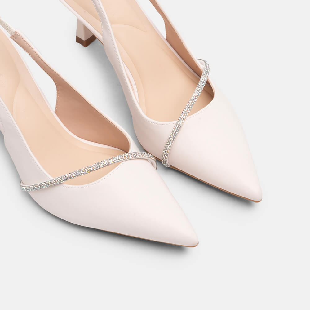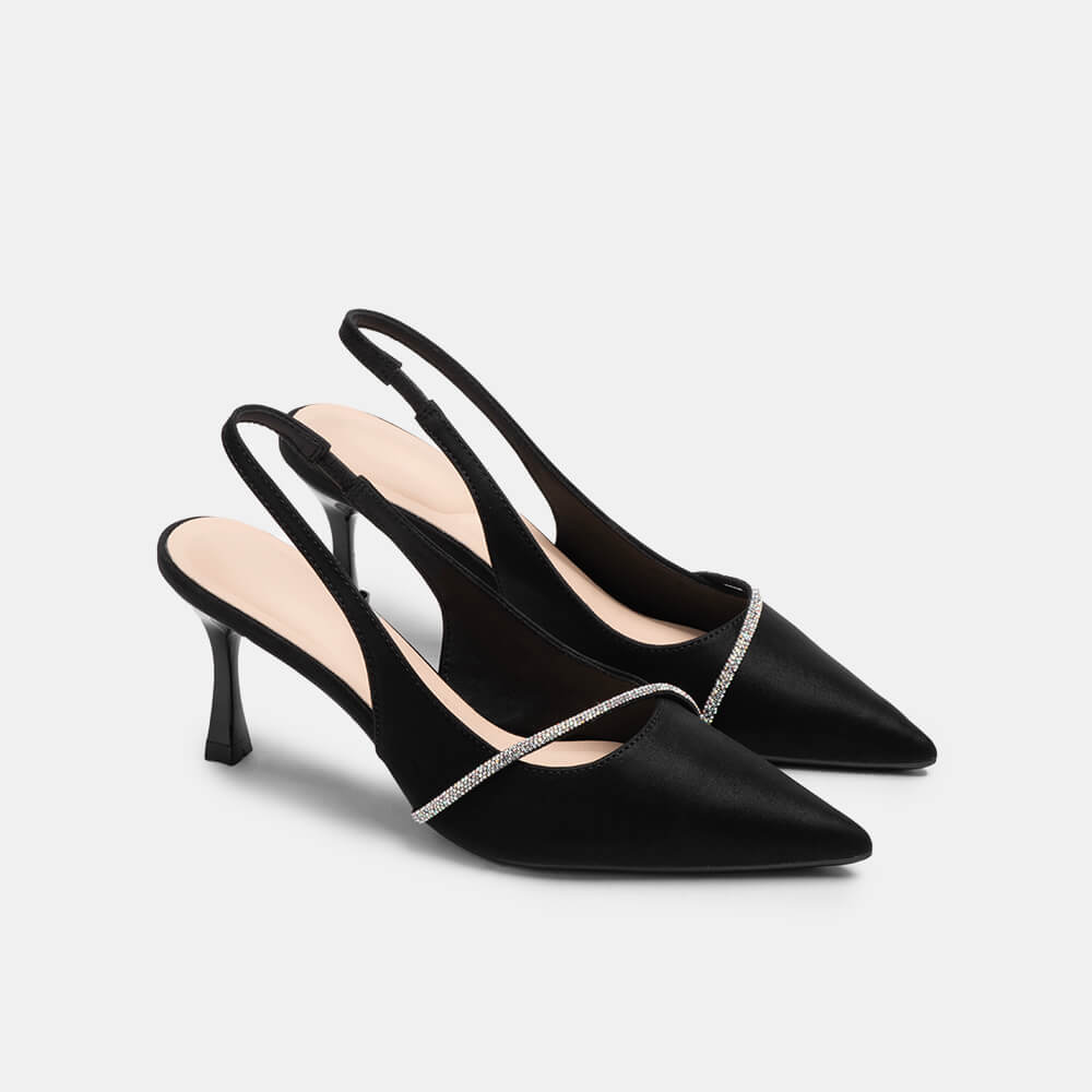 Giày cao gót sling back mũi nhọn phối charm BQ GMI0013