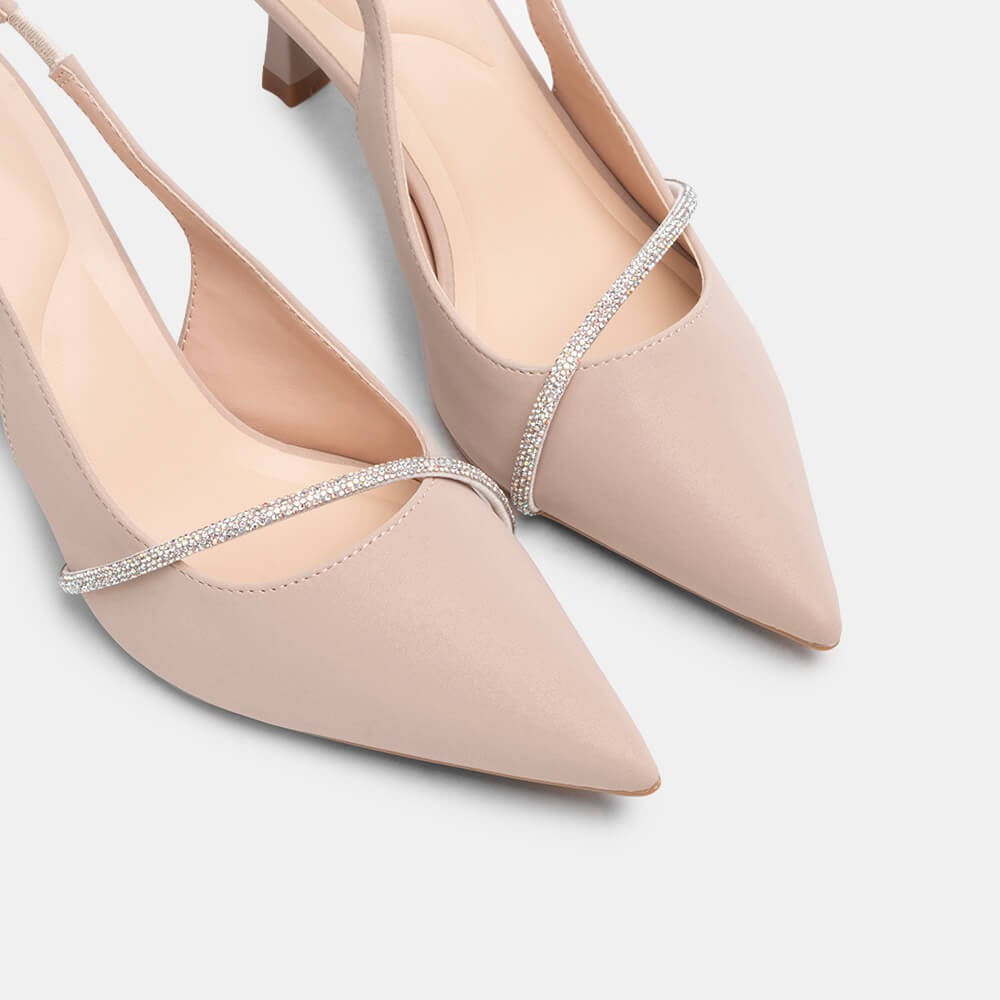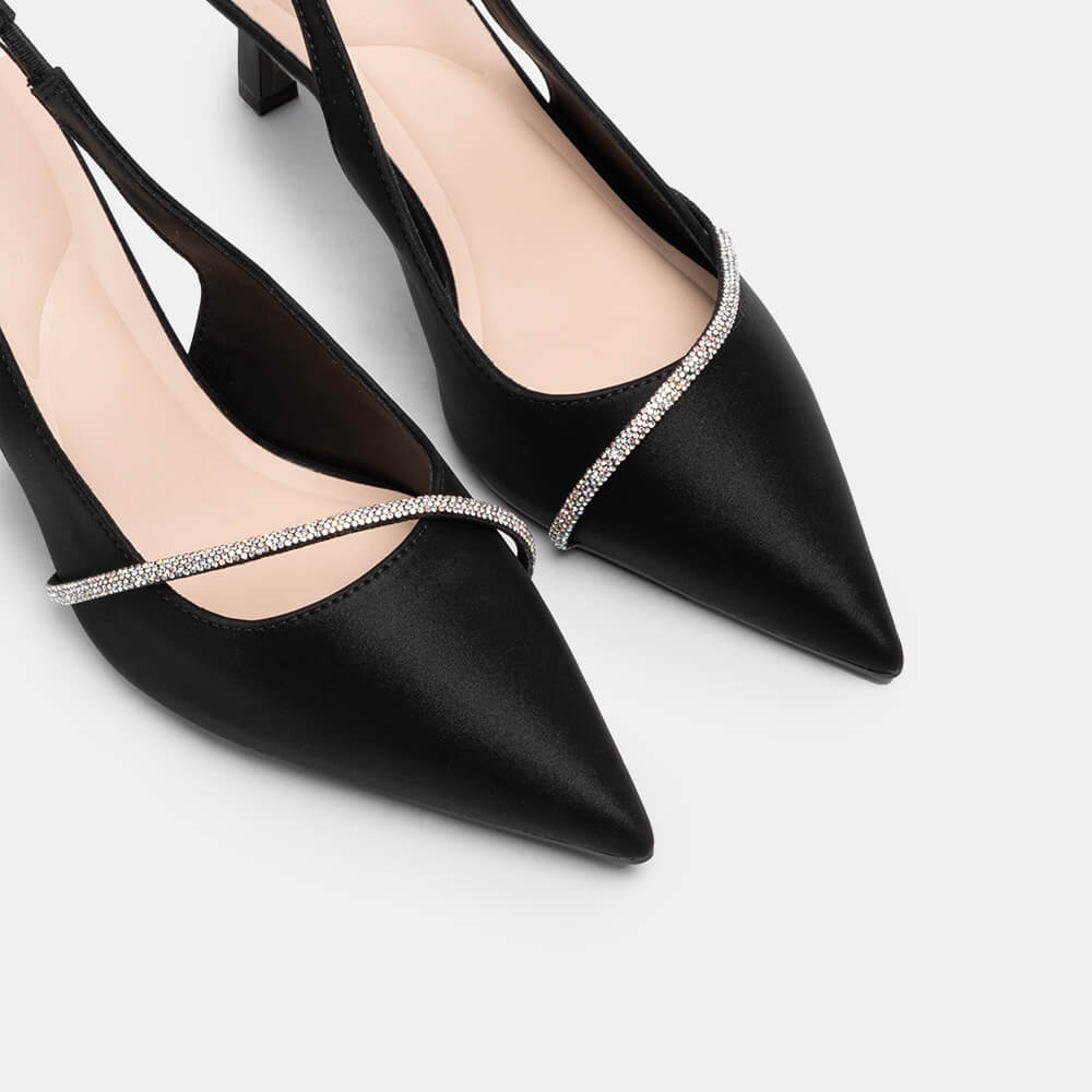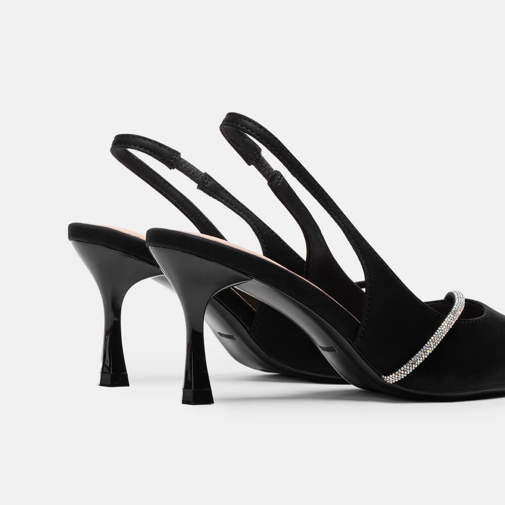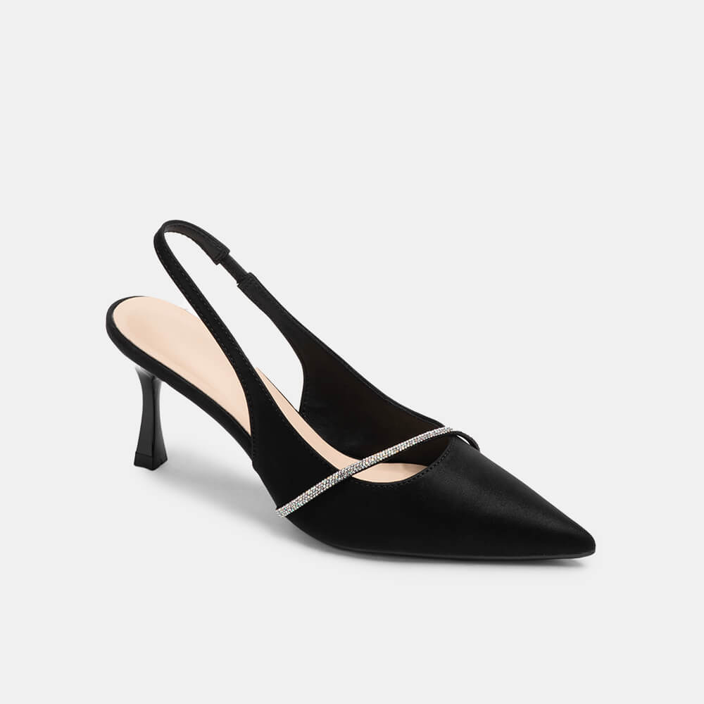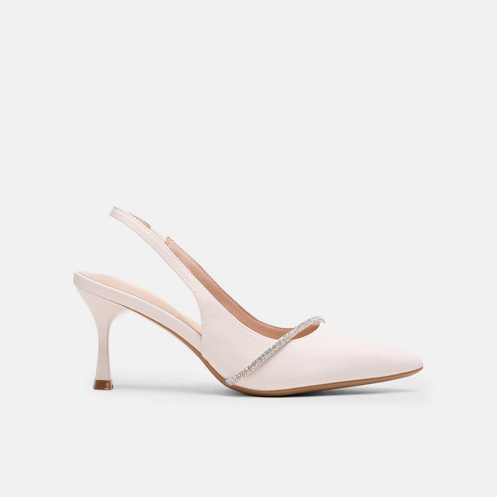 Giày cao gót sling back mũi nhọn phối charm BQ GMI0013